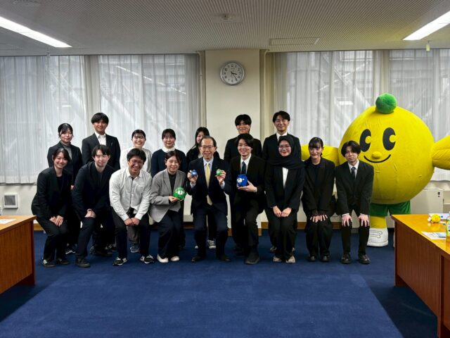 福島県知事へ受賞報告 アカデミック・アントレプレナーチャレンジ ピッチコンテスト「福島県復興シンボルキャラクターキビタン賞」