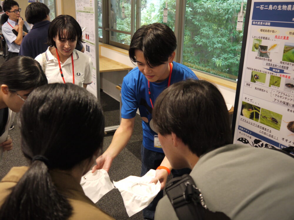 新井乃理花さん(工学府 機械システム工学専攻 博士後期課程1年)、小笠原 蒼太さん(工学部機械システム工学科4年) 、中辻宏平さん(連合農学研究科環境資源共生科学専攻 博士後期課程2年)