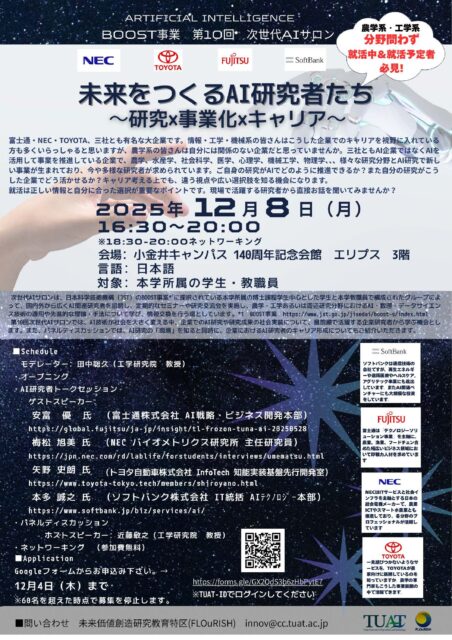 イベント情報 2025.7.2 【募集延長8月18日締切:学生研究交流会】TUAT Student Research Day 学生研究交流会・アカデミック アントレプレナーチャレンジ ピッチコンテスト(農工大全学生対象)